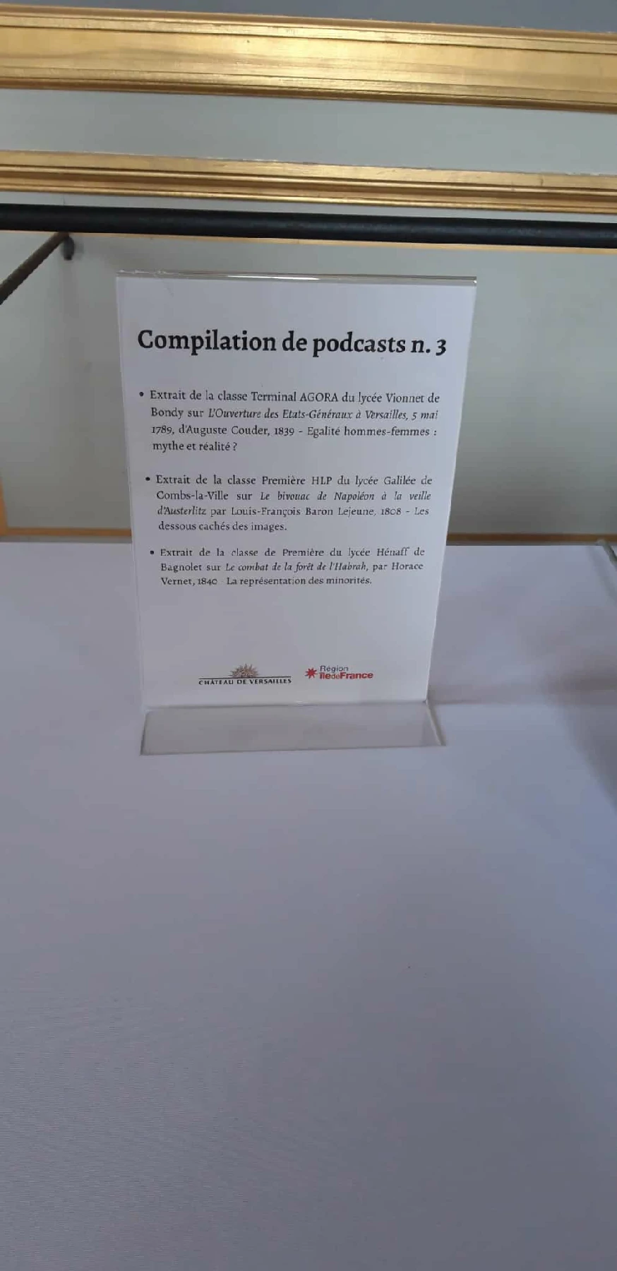 Le podcast a été remis aux élèves des deux classes et sera mis en ligne sur le site du château de Versailles dans quelques semaines.