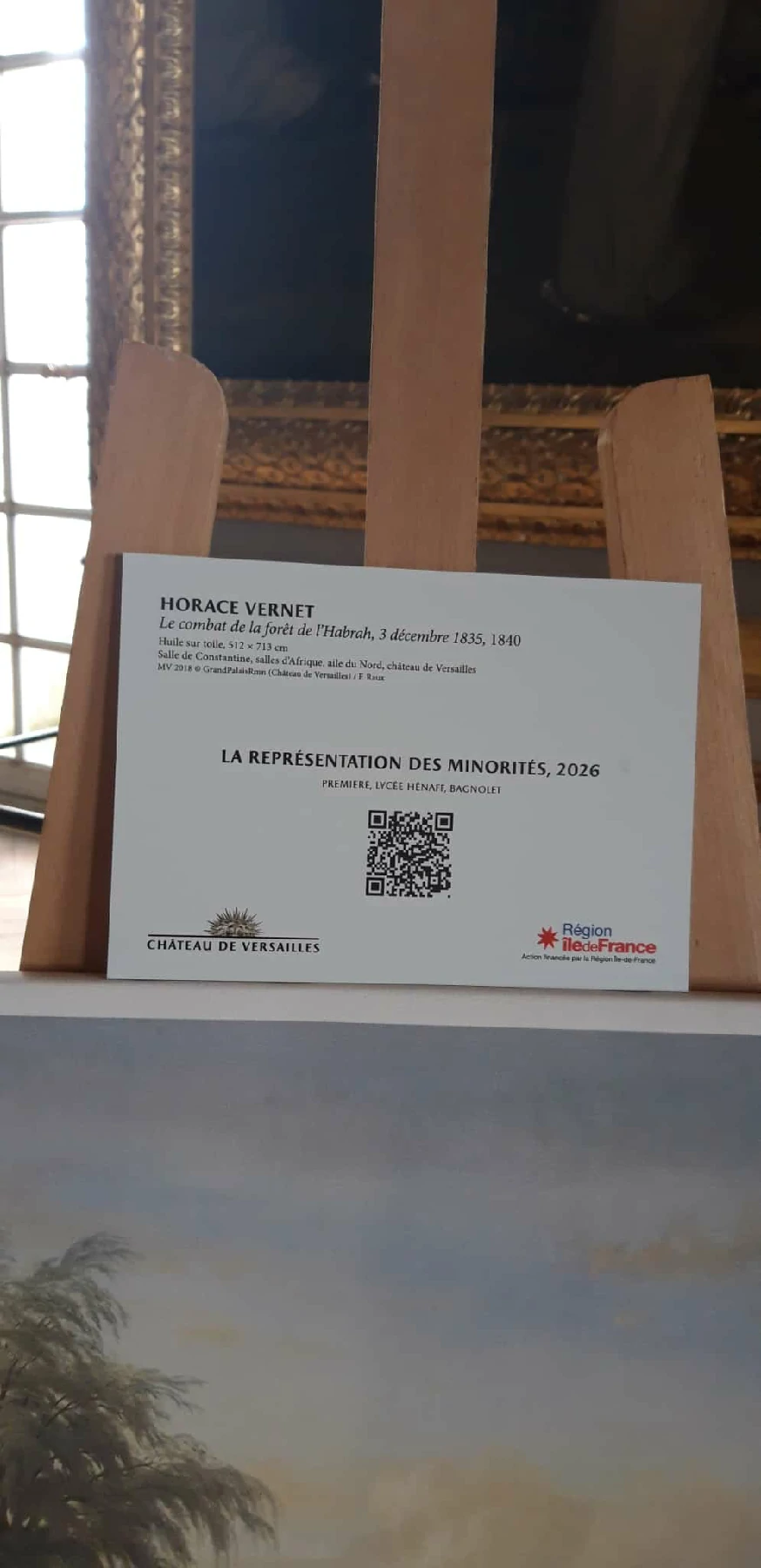 Le projet Versailles « Art, fiction et puissance du récit » au château de Versailles en lien avec une œuvre choisie dans le musée Louis-Philippe, mené par la 1ère A et la 1ère ERA/MA, s’est conclu le lundi 13 avril par une journée de restitution avec les 16 autres classes franciliennes qui ont participé au projet cette année scolaire. Le château de Versailles étant fermé au public les lundis, nous avons pu profiter d’une visite « privatisée » du château.
